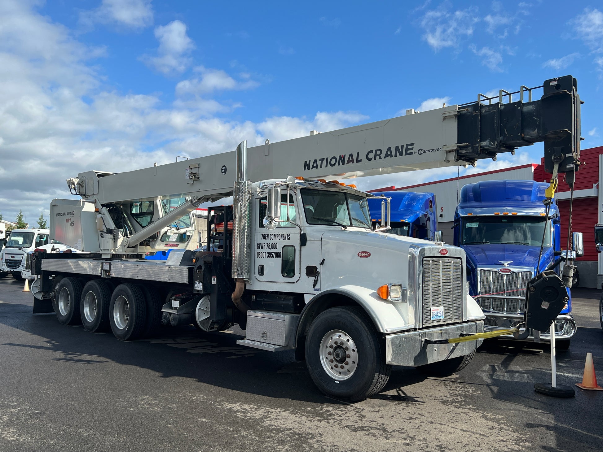 2011 Peterbilt 365 NBT 45-142 45-Ton Boom Crane Truck, VIN 1NF-SXUEX-3-BD122681, with Caterpillar C13-ACERT Diesel Engine, 430 hp, Chassis 22029, Tri-Axle, Drop 4th Pusher Axle, Day Cab, Eaton 9-Speed Manual Transmission, Chelsea PTO, CD/Sat Radio, Manitowoc 15-Ton Block, S/N 41391336, 5/8" Cable, Manitowoc Crane Control, Hydraulic Outriggers, Deck Box, 142' Hydraulic Retractable Boom, S/N 296087, 78,000 GVWR, 3,90X hrs., 35,388 miles (LOCATED: Sumner, WA 98390)
